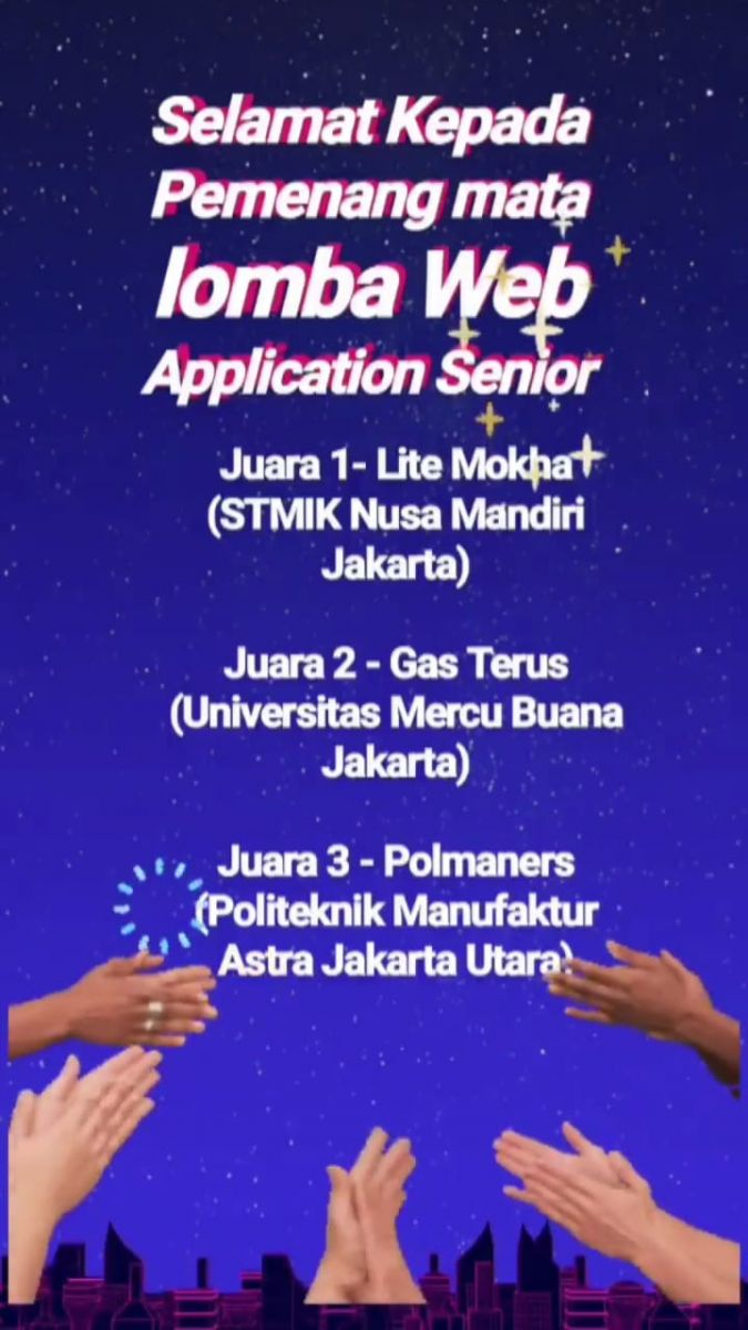 dengan nama team "GAS TERUS" dan tema rancangan adalah "CARI AMAN - No Tipu Tipu", dengan ikhtiar yang telah mereka lakukan, semoga dapat memberikan kebanggaan untuk diri mereka dan juga untuk kampus Universitas Mercu Buana - Fakultas Ilmu Komputer.